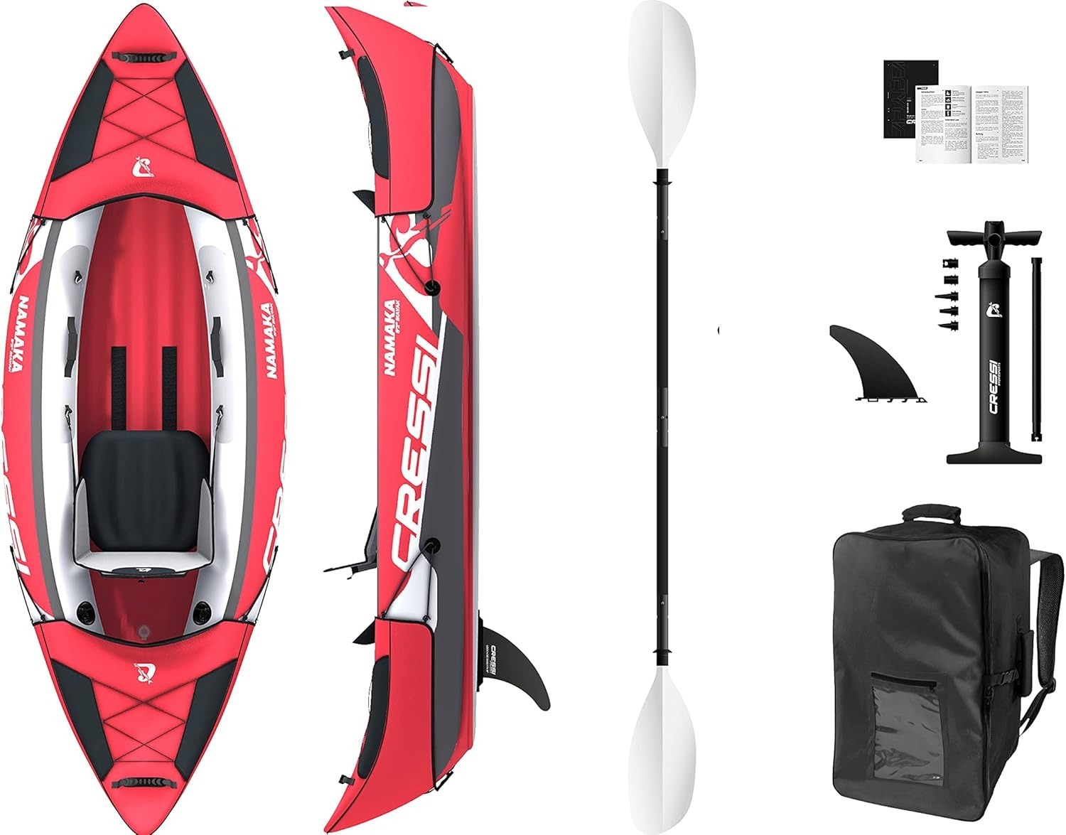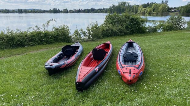 Kajaktyp & Einsatzzweck: Aufblasbares Kajak für eine Person.Abmessungen, Gewicht & Zuladung: Wiegt nur leichte neun Kilogramm.