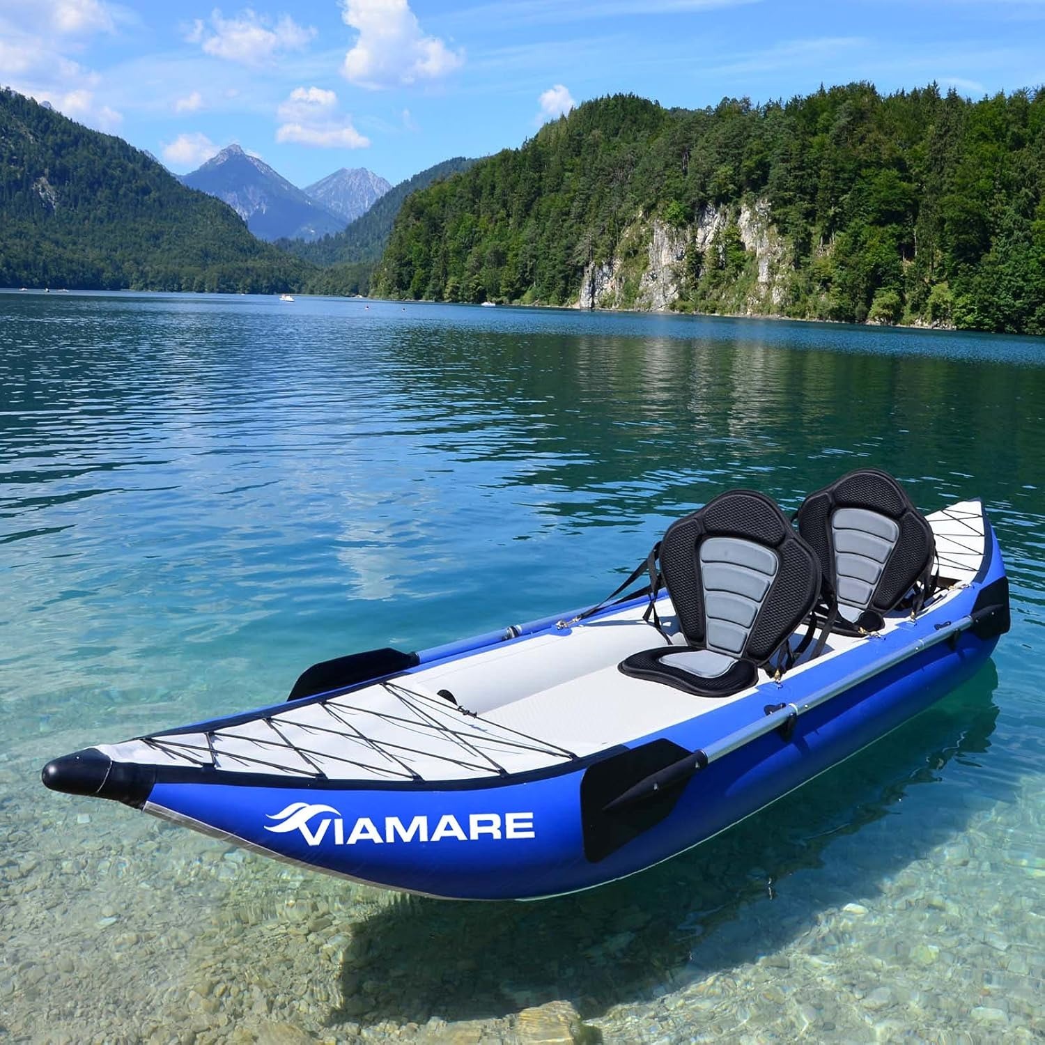 Kajaktyp & Einsatzzweck: Kajak für zwei Personen, schnell startklar.Abmessungen, Gewicht & Zuladung: Bietet Platz für zwei Erwachsene.