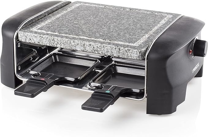 Leistung & Temperatur: Kompakte 600 Watt Leistung.Kapazität & Pfännchen: Für 2-4 Personen; 4 Pfännchen.