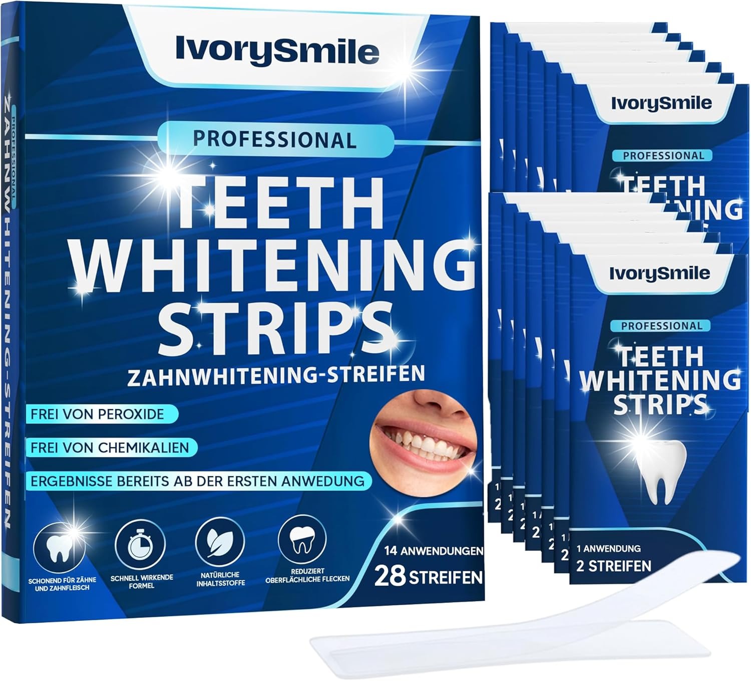Pflege, Verpackung & Zubehör: Beinhaltet 28 Strips für Komplettbehandlung.