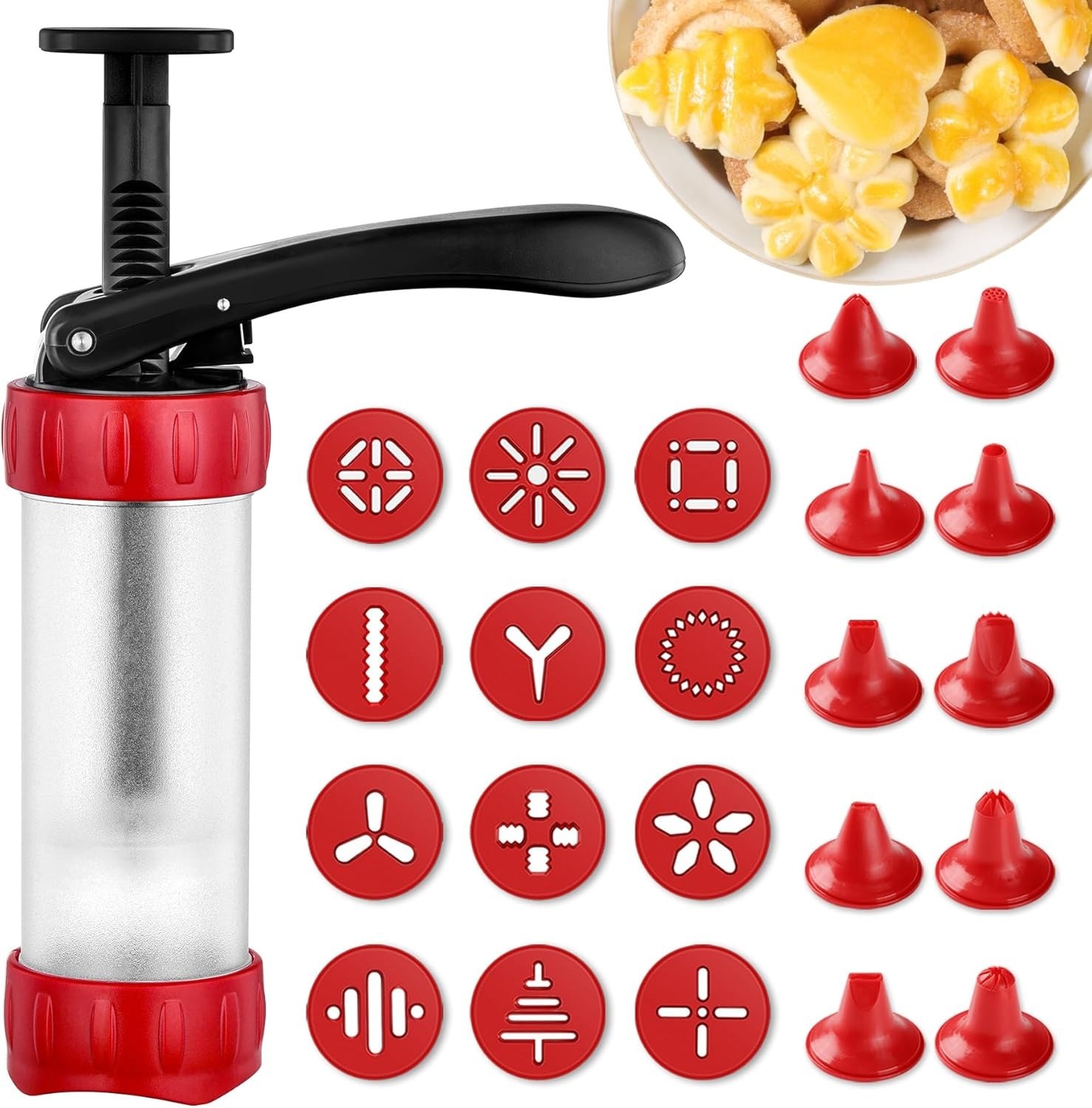 Aufsätze & Formen: Beinhaltet 20 verschiedene Keksformen, darunter klassische Formen wie Blumen, Herzen und verschiedene geometrische Designs für vielseitiges Backen.
